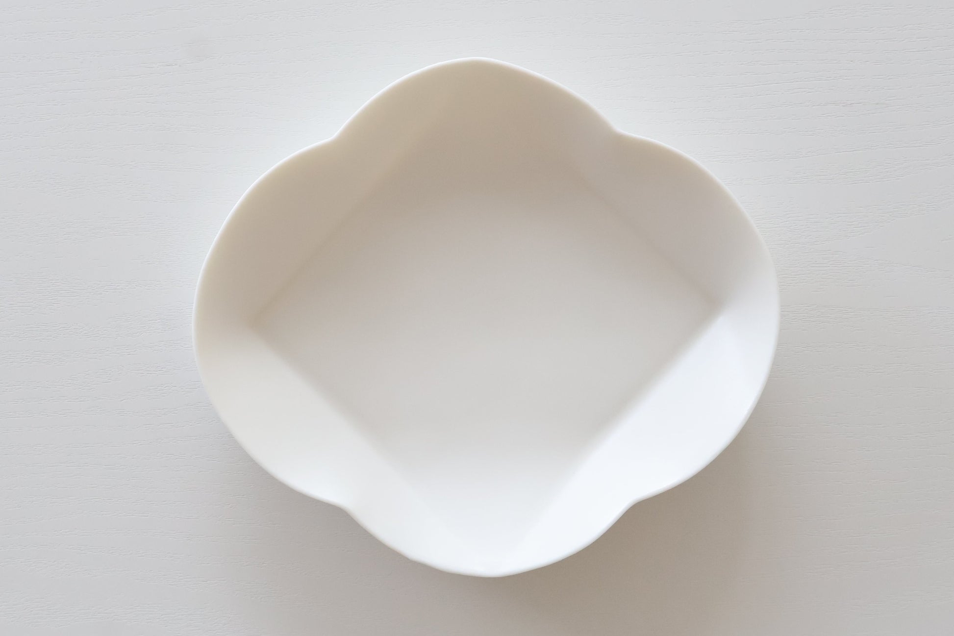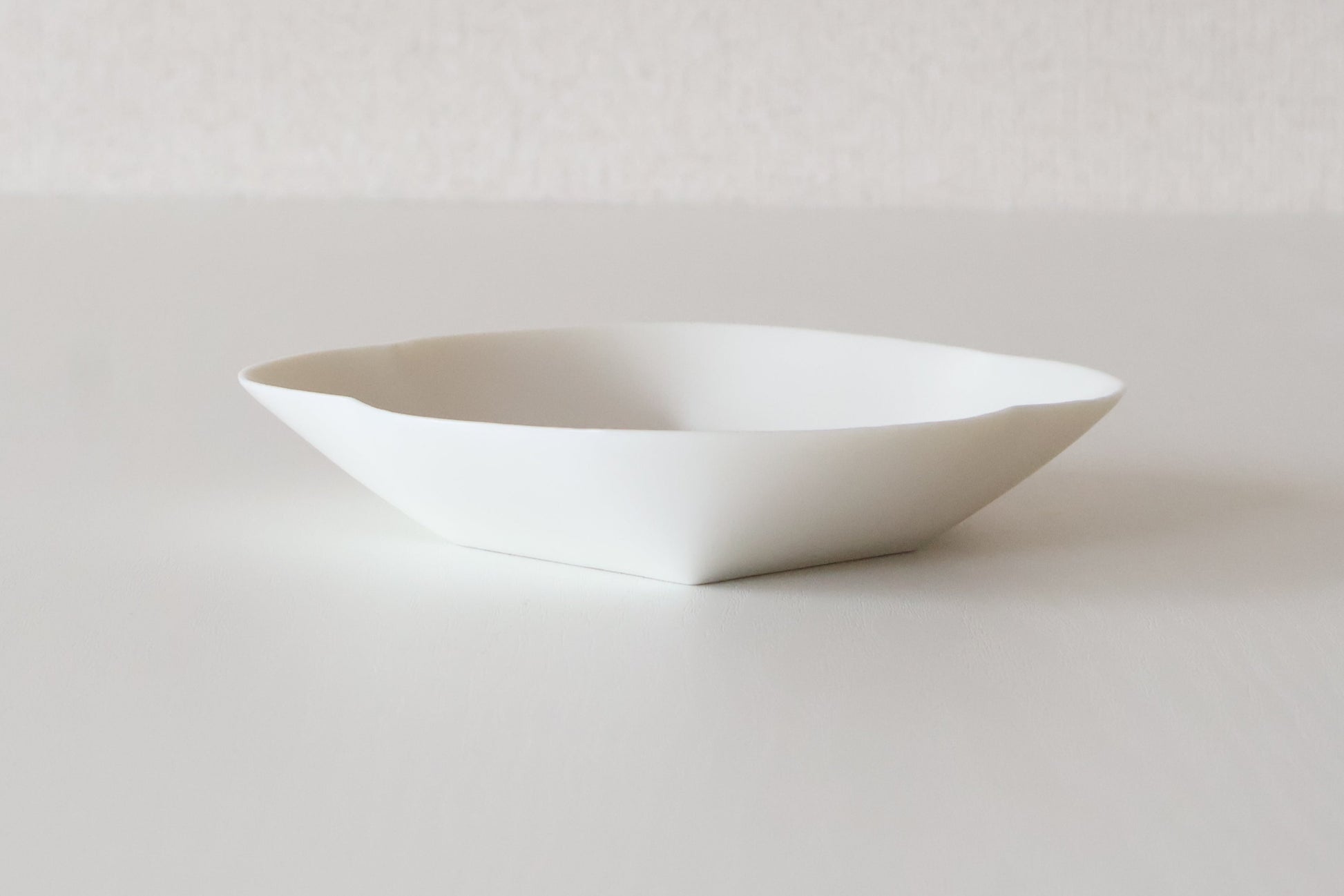 取り分け皿や前菜・おつまみの盛り付けにぴったりのサイズ感です。白い磁器の清らかな光沢が、料理の色や形を引き立て、ワンプレートとしても活躍します。軽やかで扱いやすく、食卓にそっと華やぎを添える器です。