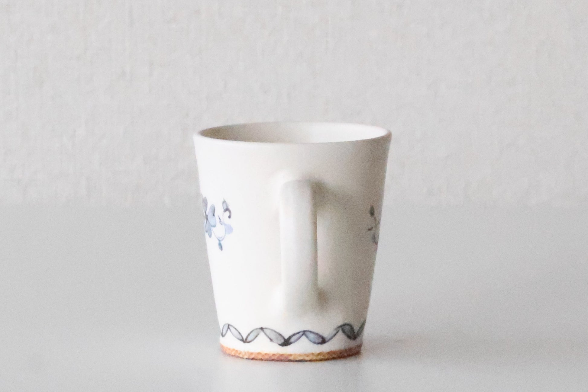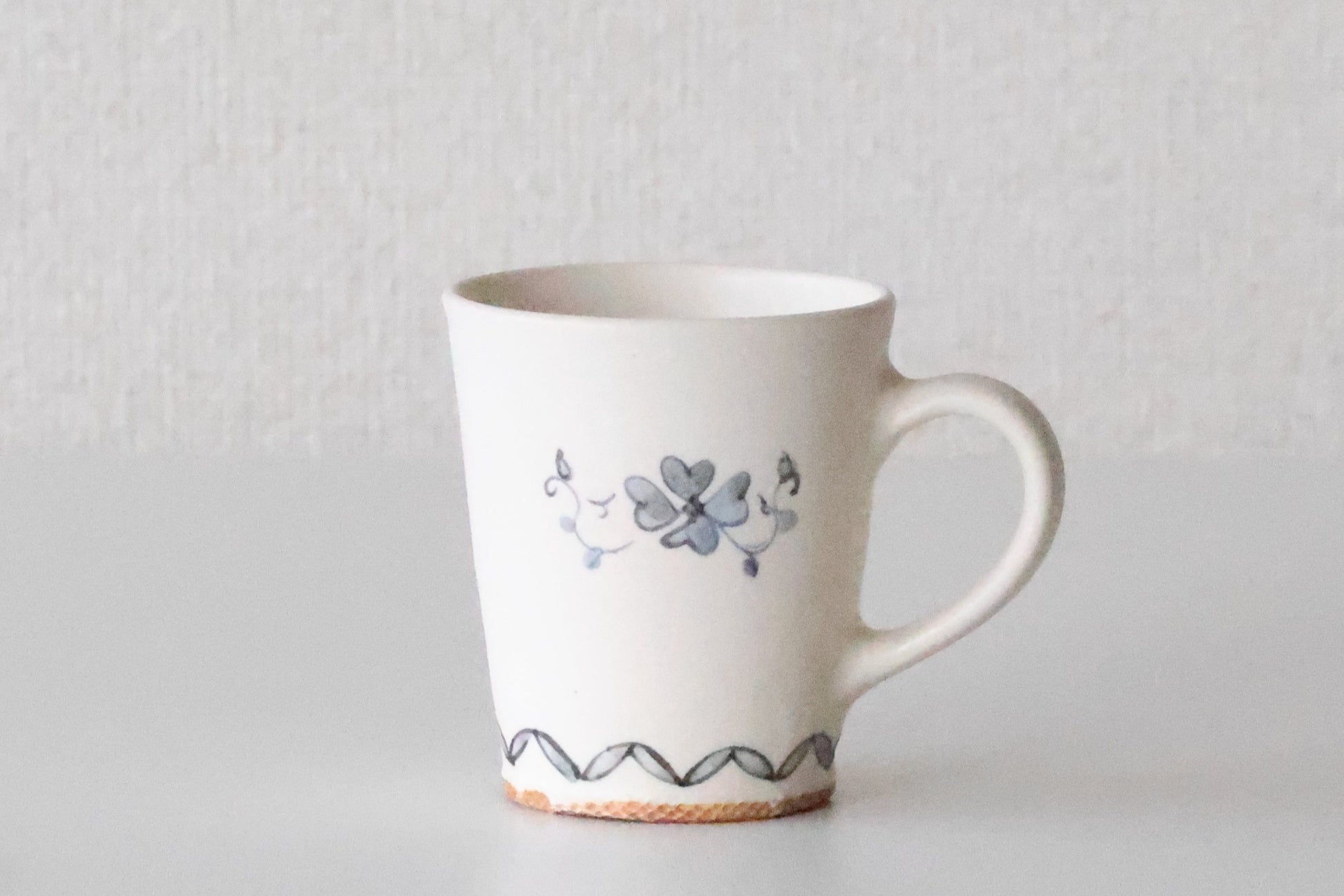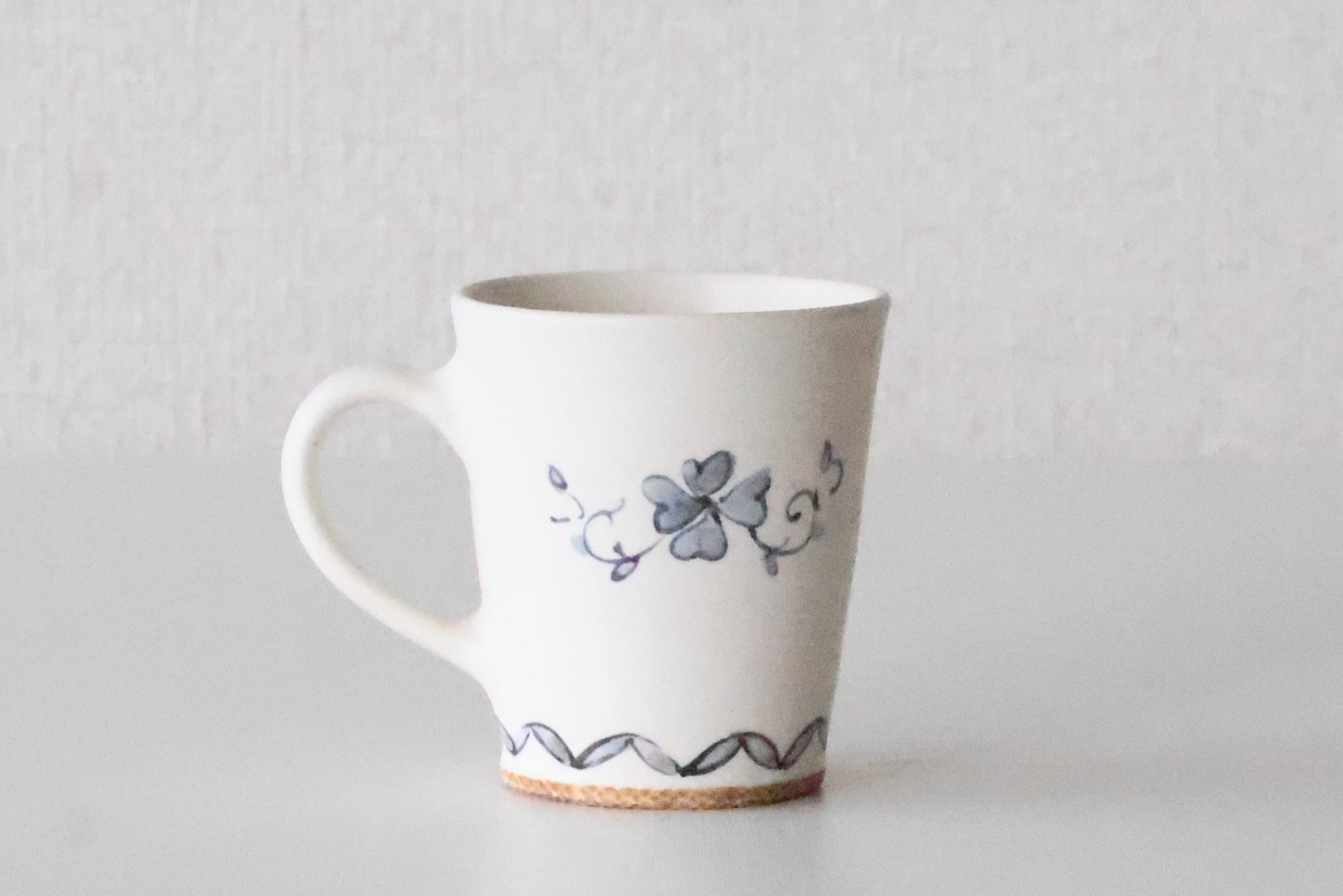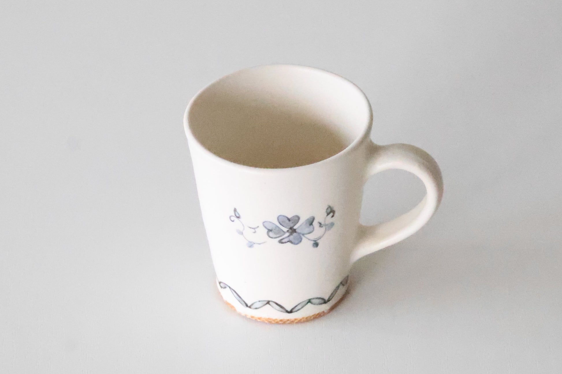 やさしい白と手描きの模様が、ほっと一息の時間を包み込むマグカップです。毎日のコーヒーやお茶の時間を、少し特別にしてくれる一品。贈り物としても喜ばれます。