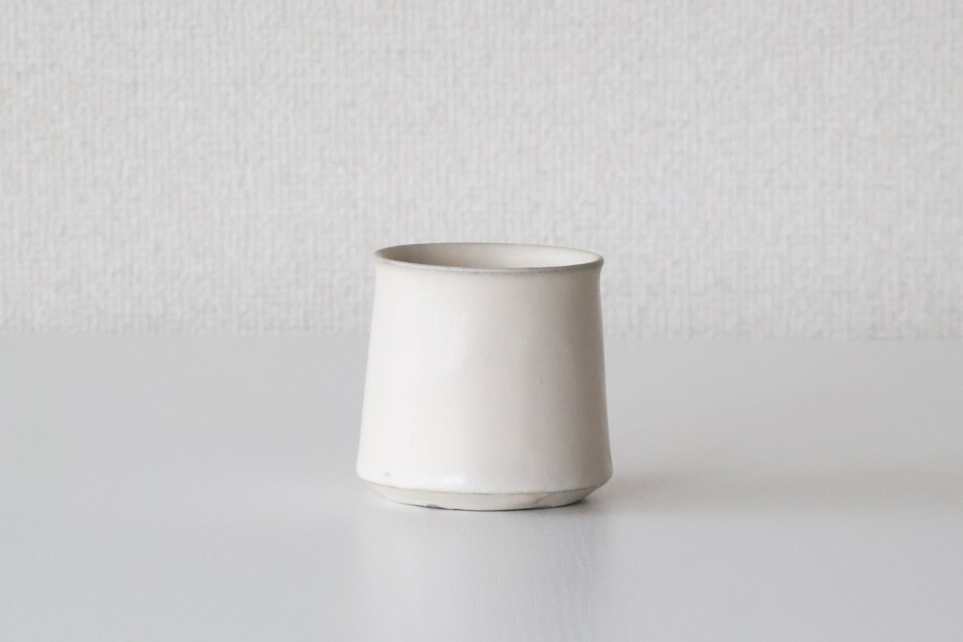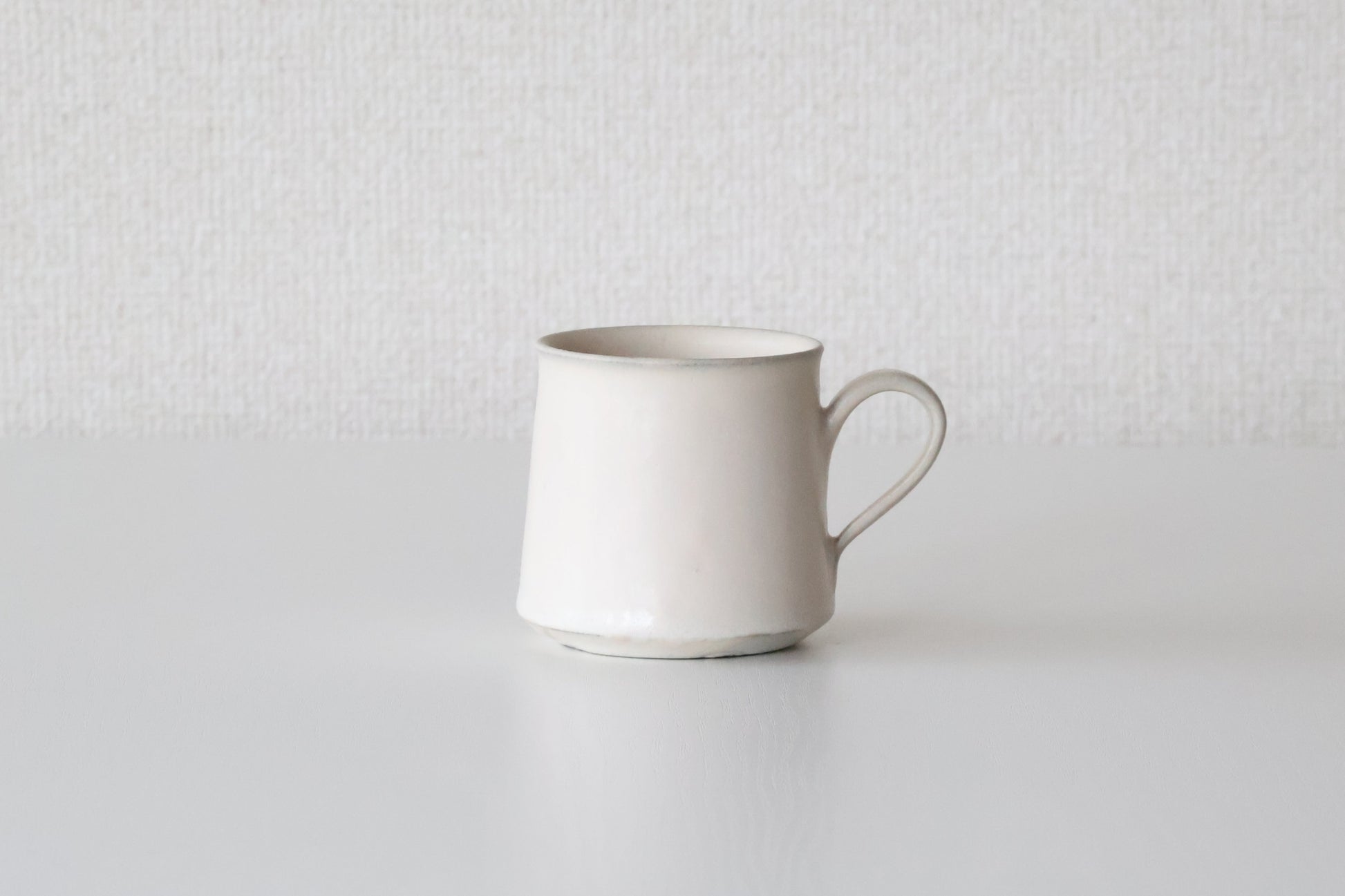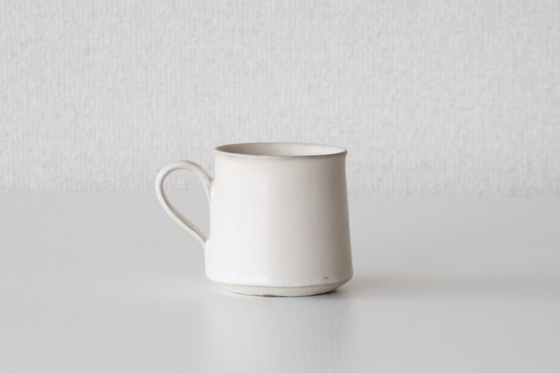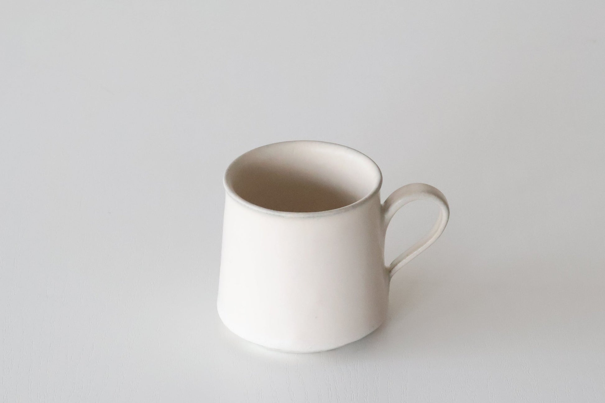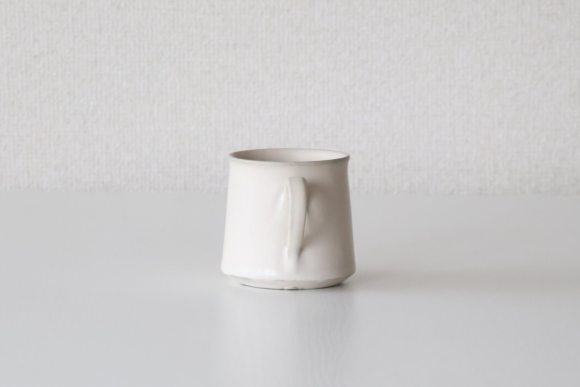 「台形マグ」は、シャープさと柔らかさが調和した、粉引のマグカップです。 すっと伸びた台形のフォルムが印象的で、静かな佇まいの中に凛とした美しさが感じられます。一杯の飲みものが、丁寧な時間になってゆくそんなひとときを贈るマグです。