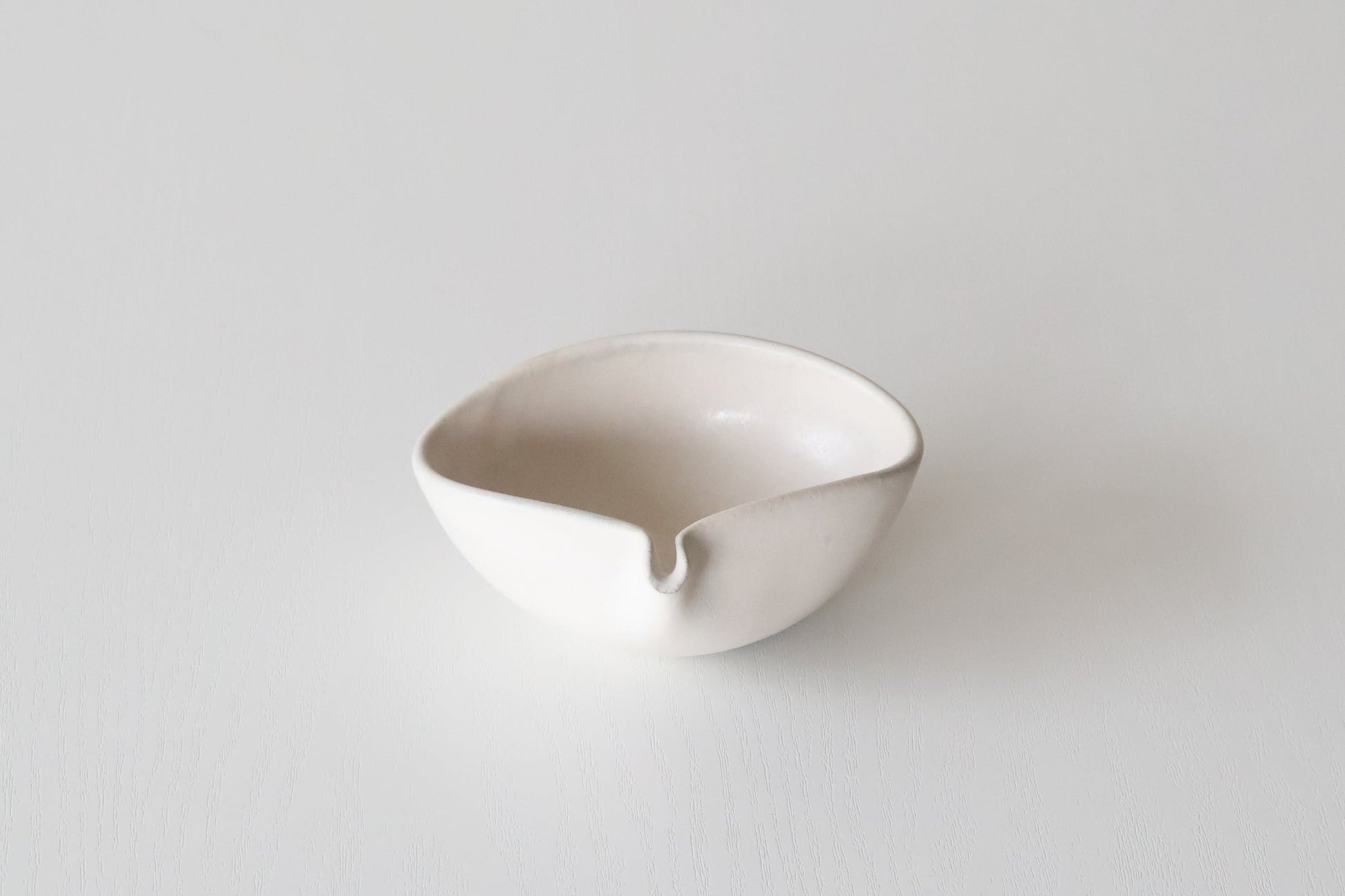 「片口豆鉢」は、手のひらサイズの愛らしさに、片口のかたちが加わった小鉢です。やわらかな粉引の白が、贈る人のやさしさを映し出し、日々の食卓にそっと寄り添ってくれます。大切な人に “ほんの気持ち” を贈りたいときにもおすすめの一品です。