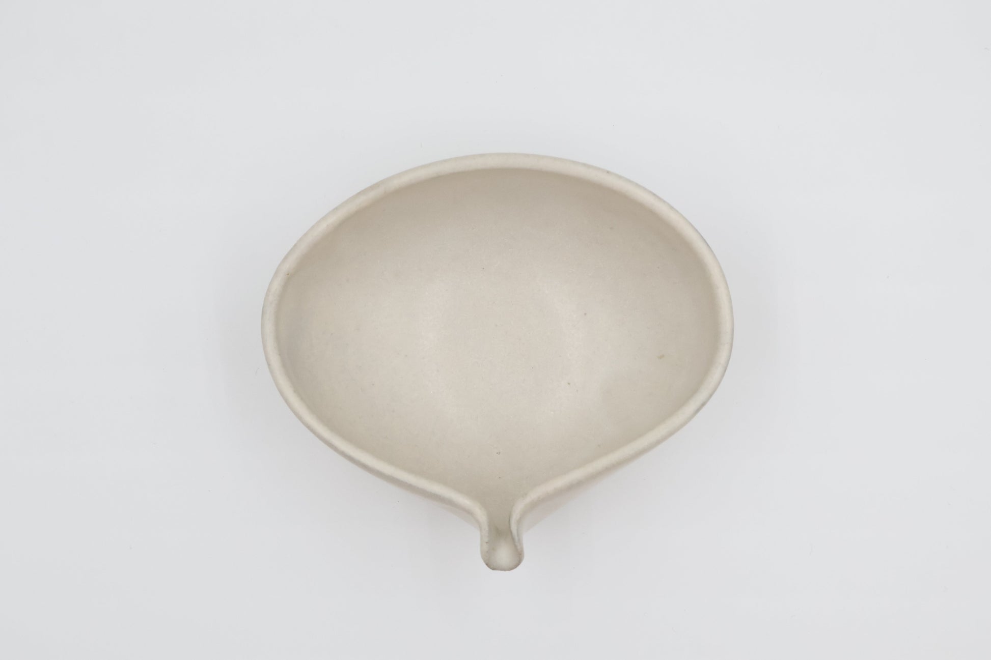 注ぎ口があることで実用性もあり、ドレッシングやポン酢などを食卓で使うときにも便利です。片口のかたちは見た目にもやさしく、控えめながら印象に残るデザインです。どこか懐かしさとあたたかみを感じる一品です。