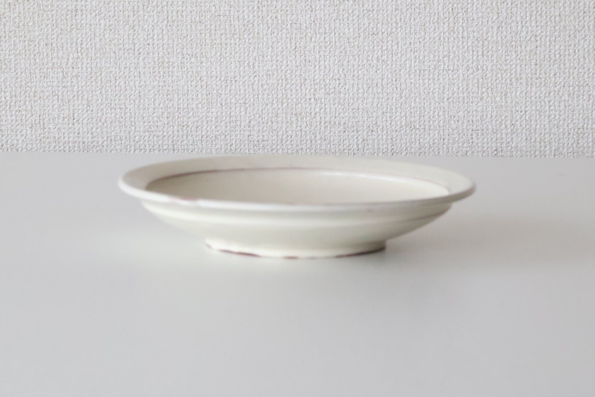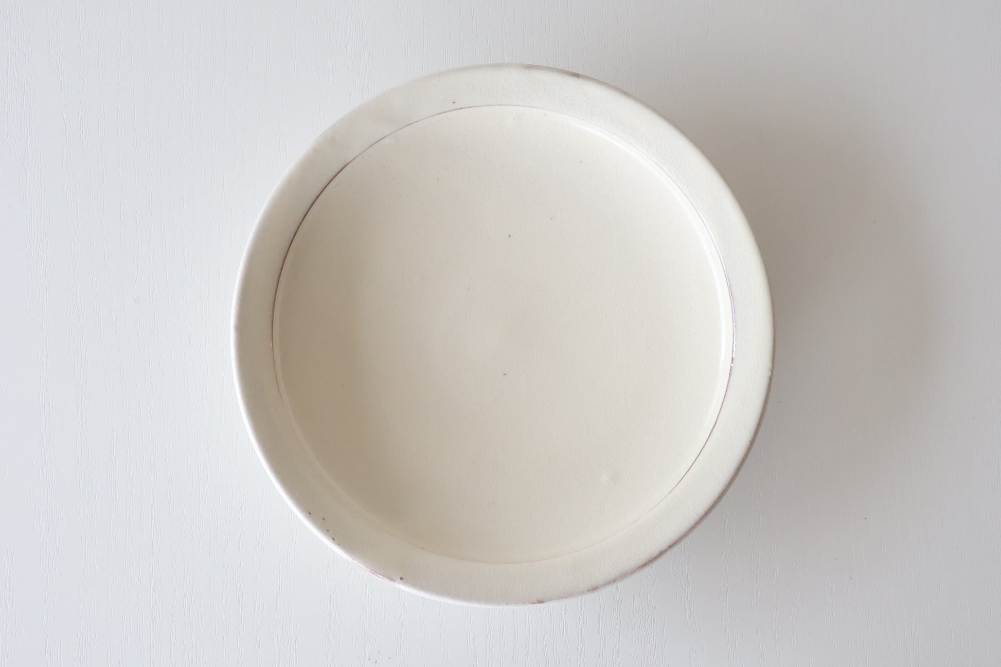 直径21cmのちょうど良いサイズ感で、メイン料理の盛りつけやワンプレートごはんにもぴったりのリム皿です。リムのあるデザインは、料理をより美しく引き立ててくれるだけでなく、取り分け皿としても使いやすい形。粉引ならではのやさしい白が、どんな料理もやさしく受けとめてくれます。