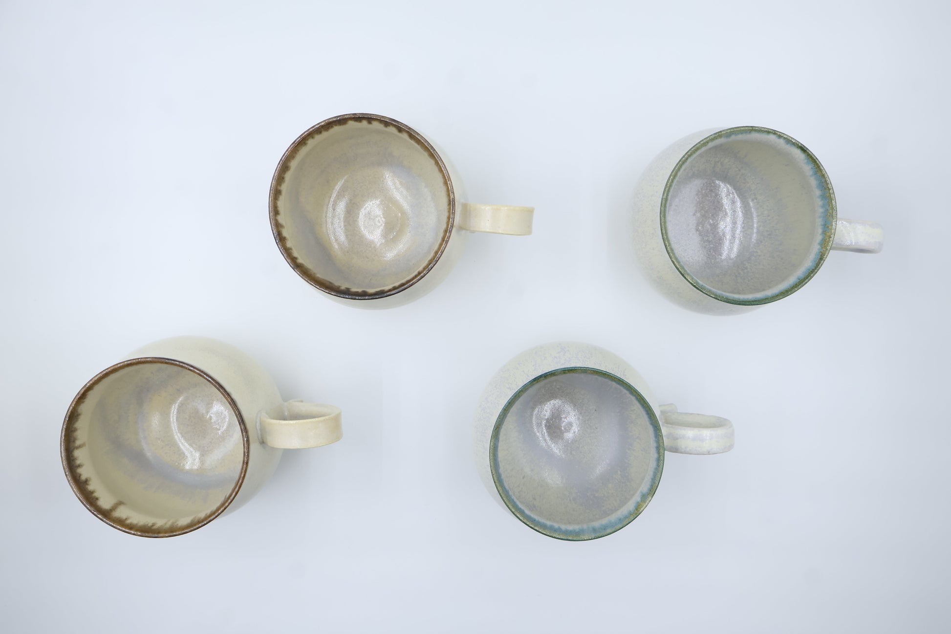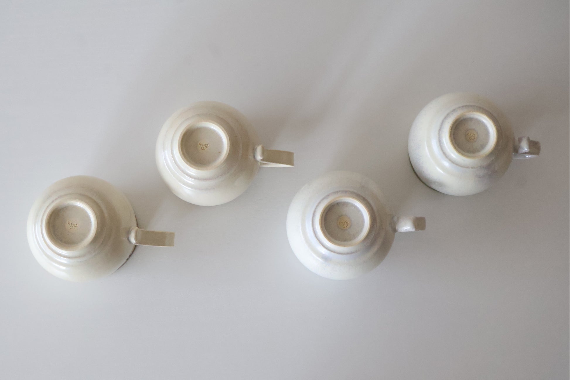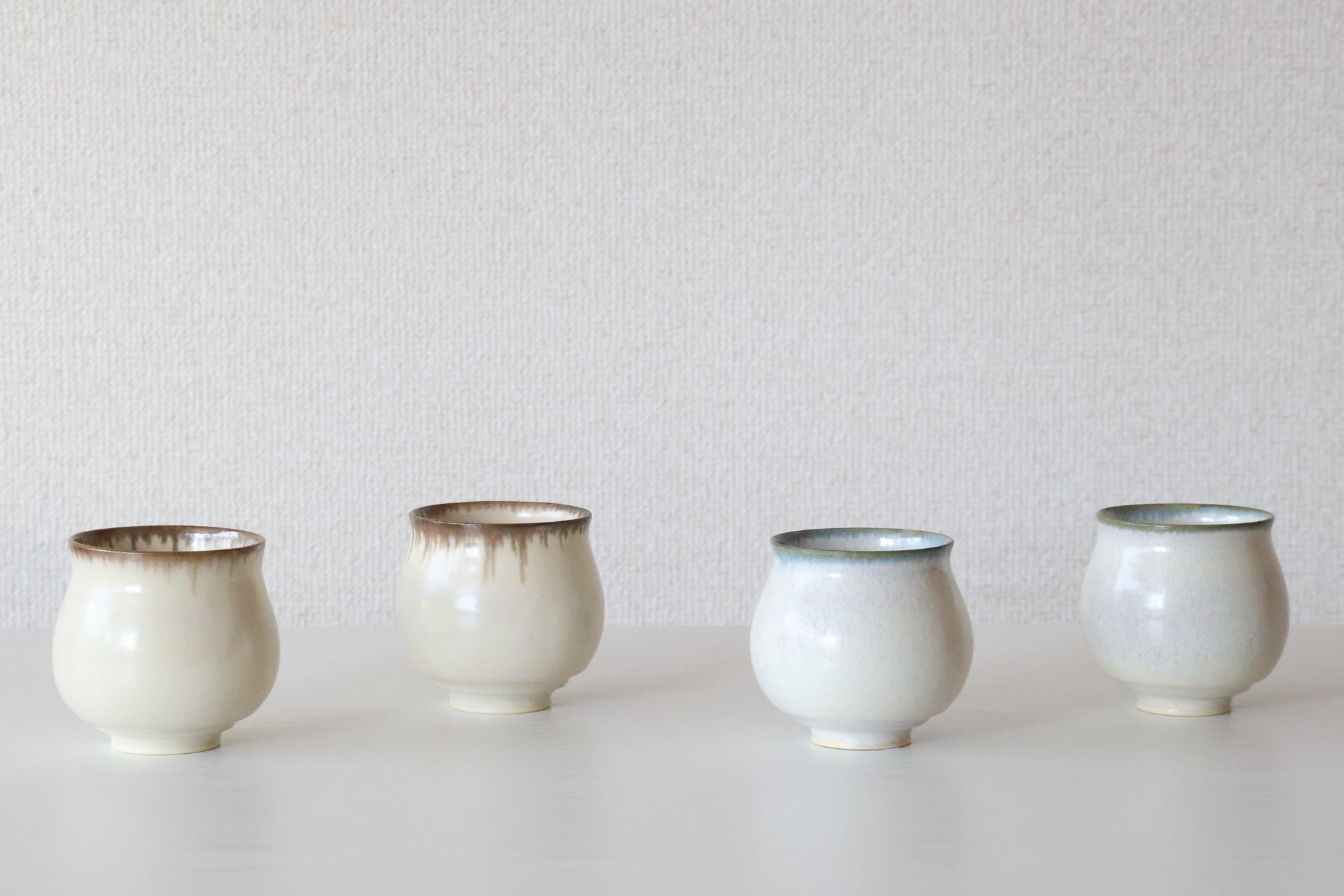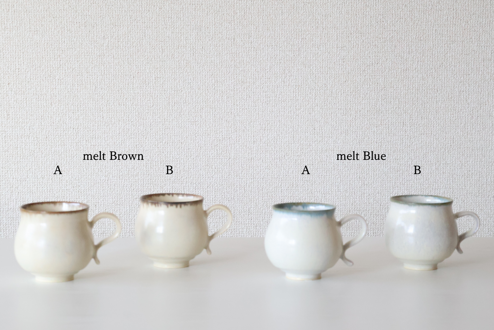 くるりとねじった取手が目を引く、愛らしいマグカップ。指に優しくなじむ形は、見た目のアクセントだけではなく、持ちやすさも兼ねそなえています。淡くやわらかな白地に、釉薬の濃淡が生む美しい景色。使うたびに手になじみ、ほっとする時間と温もりを届けてくれる、松尾さんらしい逸品です。