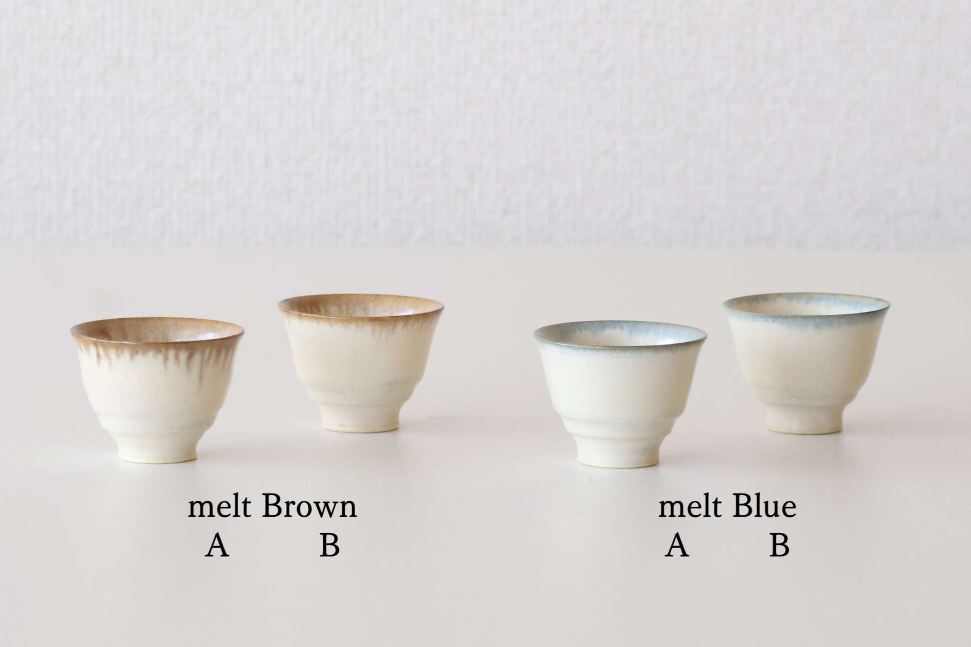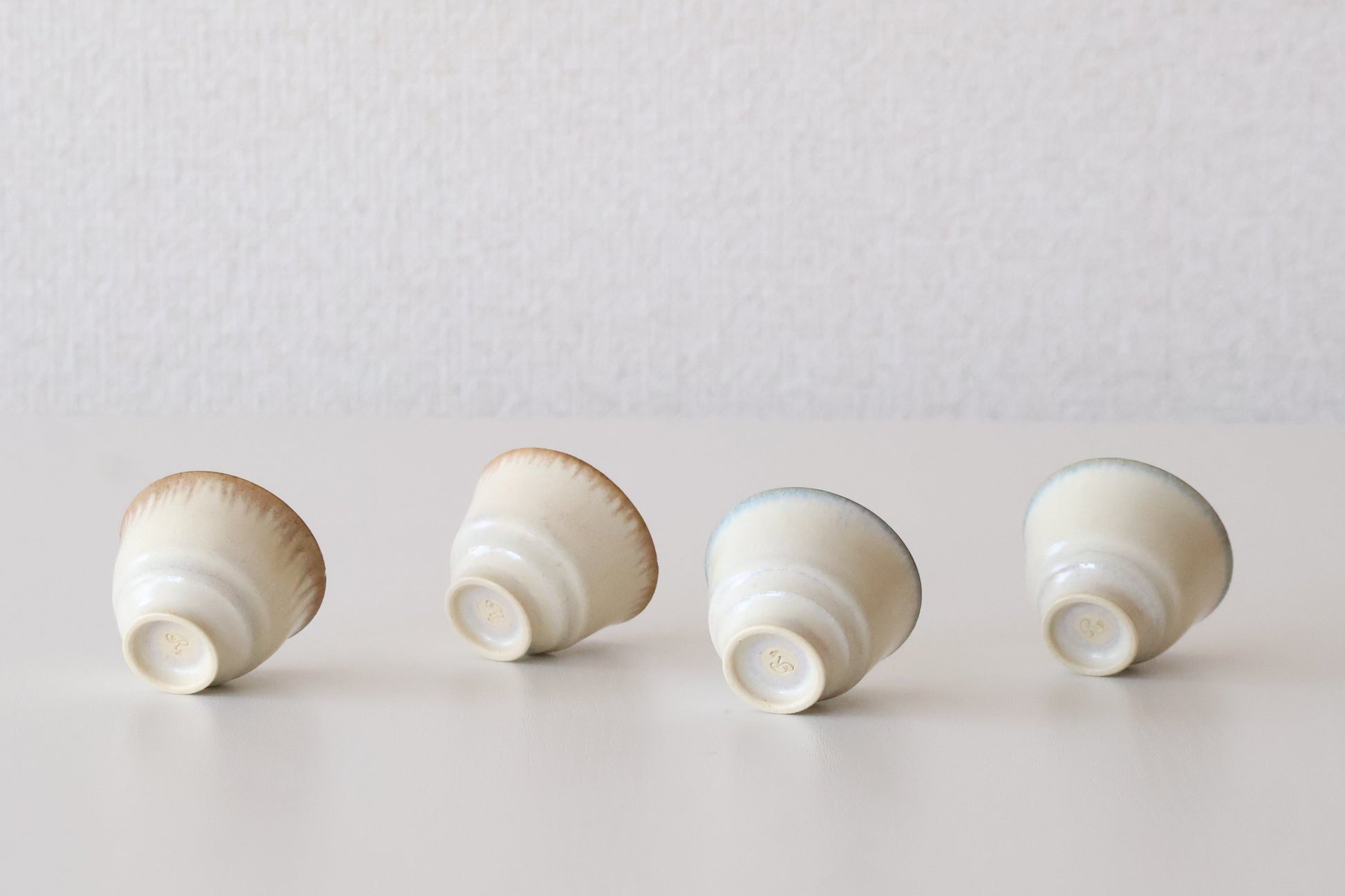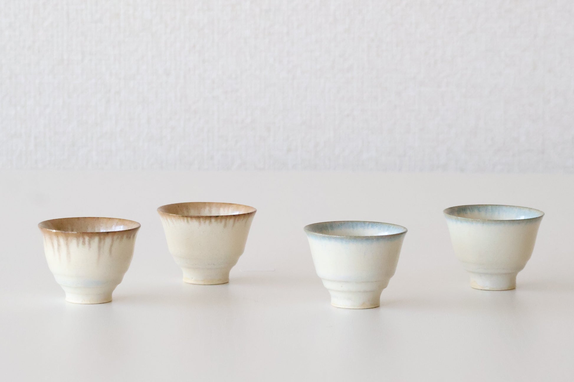淡くにじむ釉薬の表情が美しい、小ぶりなお猪口。手にすっと収まる形と口当たりのやさしさが魅力です。一つ一つ異なる釉薬の流れが、まるで景色のような趣を生み出し、眺める楽しさも感じられます。