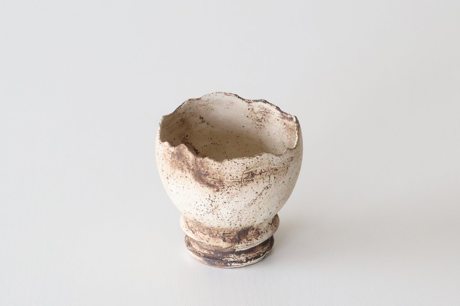 まるで卵の殻のように、そっと生命を包みこむような「錆白泥2.5号卵殻鉢[chalaza]」。錆がかったやわらかな白と丸みのあるシルエットが植物の美しさを静かに引き立ててくれます。お気に入りの植物にやさしく寄り添う姿はご自宅用にはもちろん、「育てる楽しみを贈る」ギフトとしてもぴったりです。