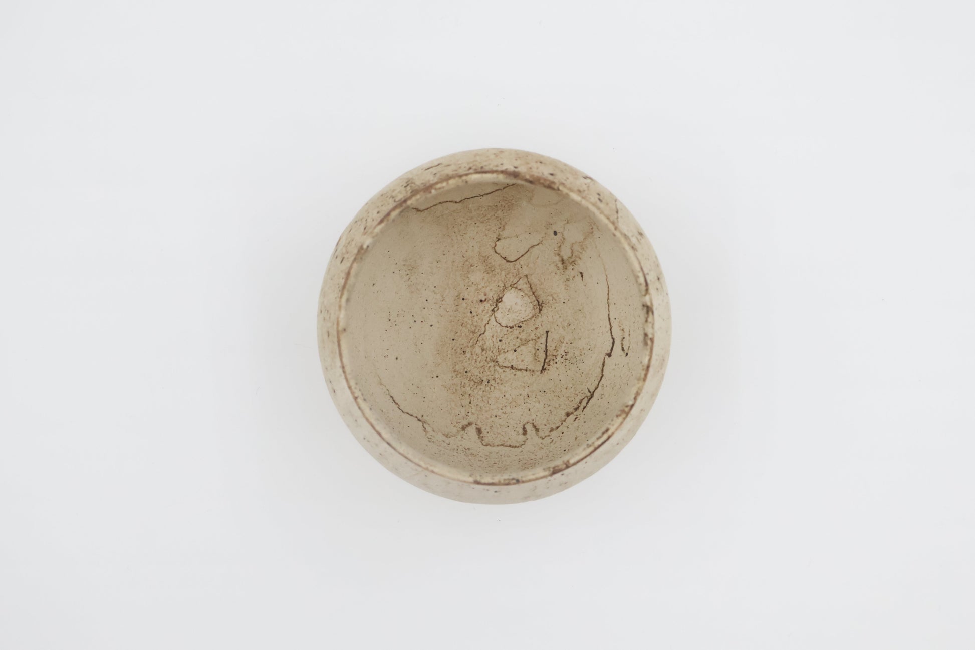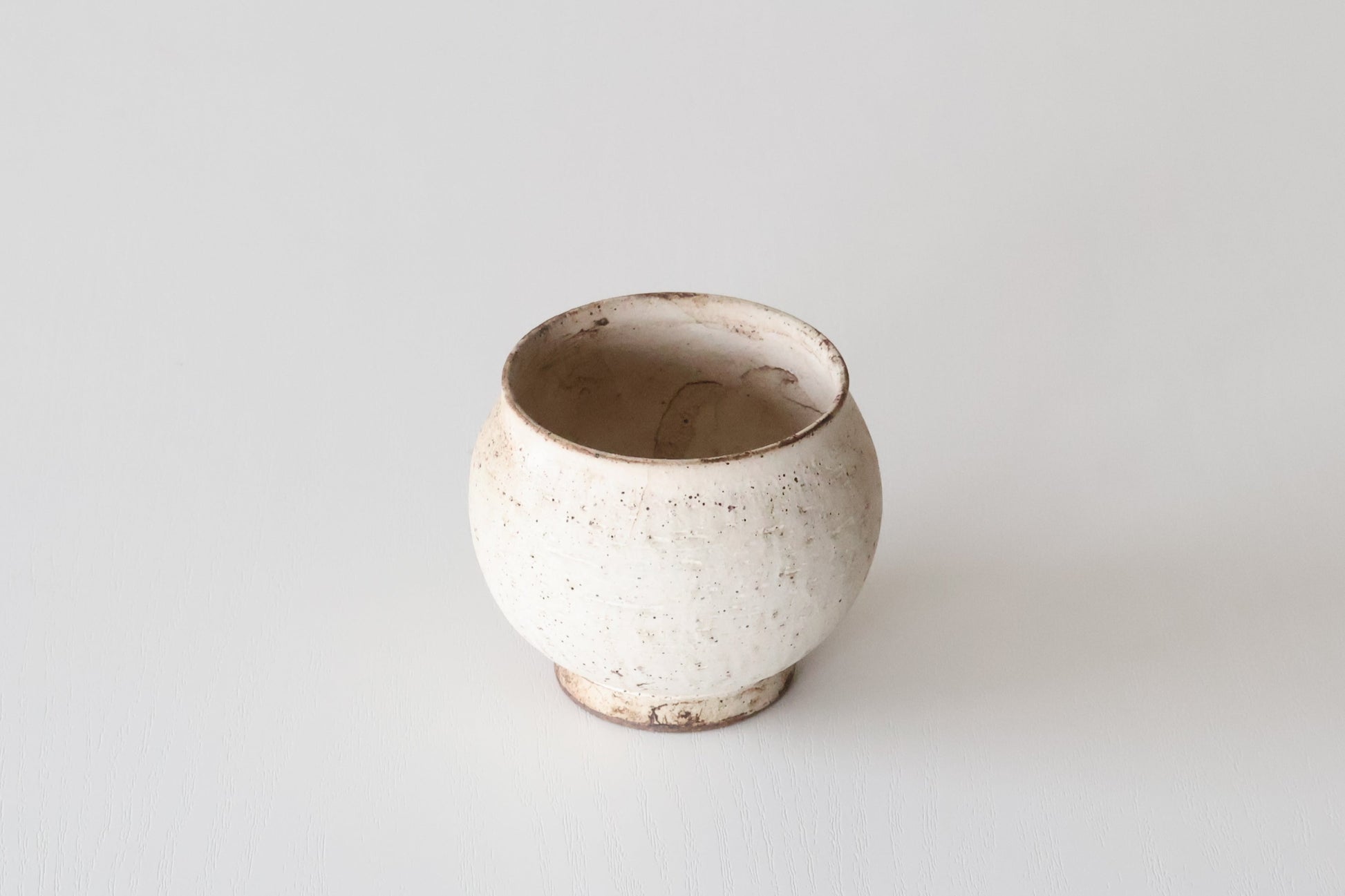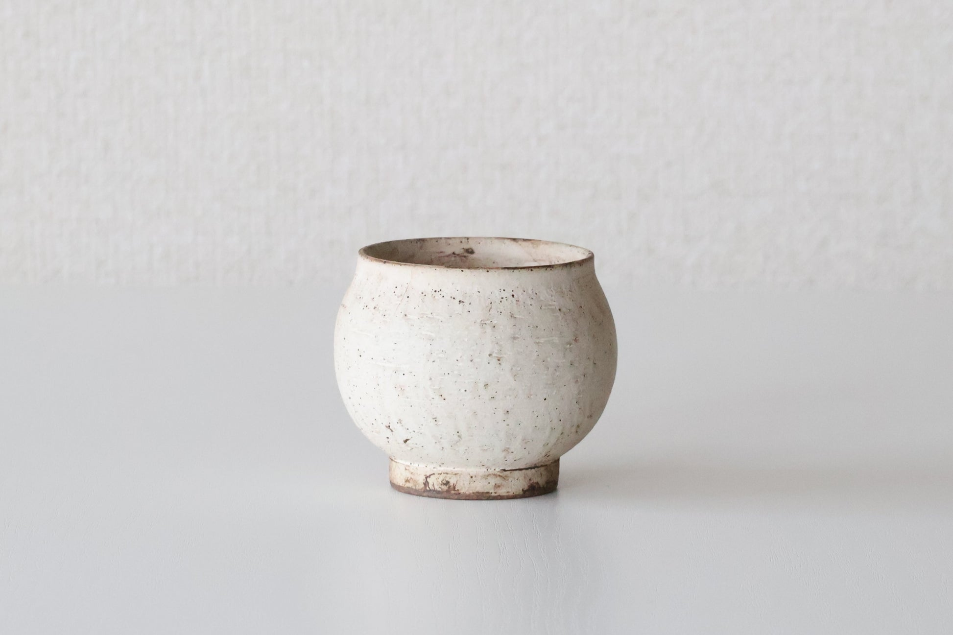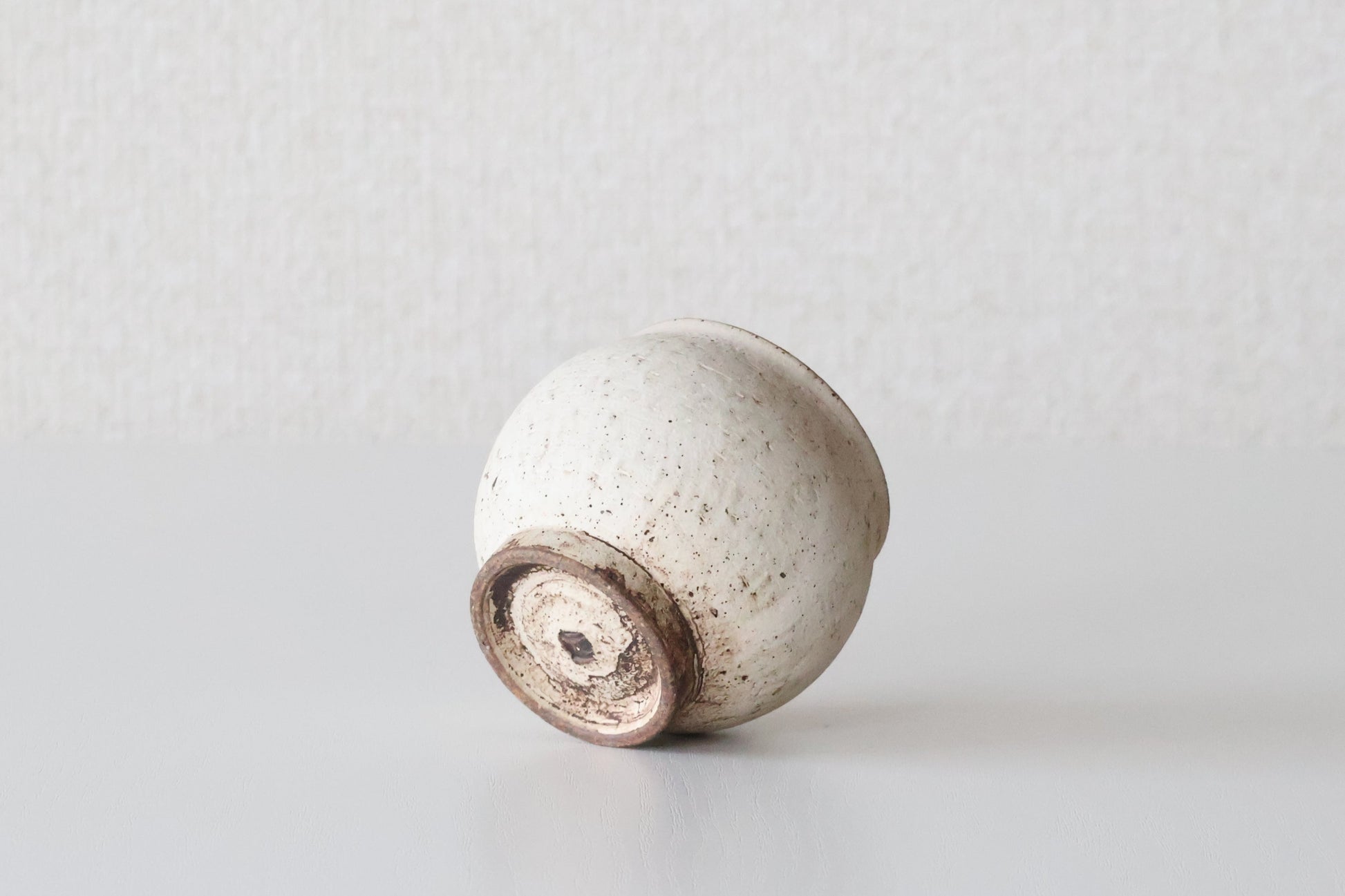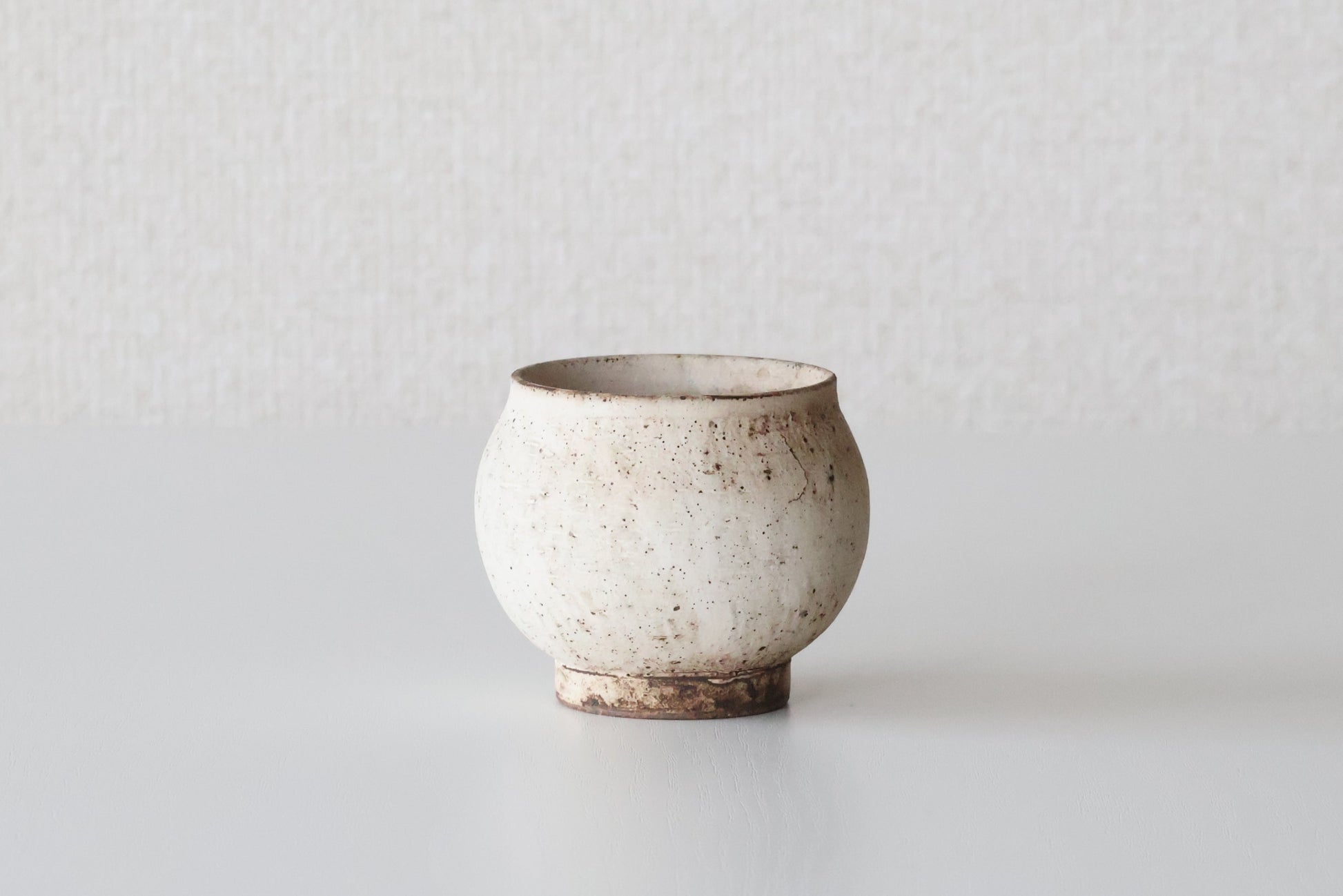 手のひらにすっとおさまる、小さなまるい湯呑み「錆白泥丸湯呑み」。
