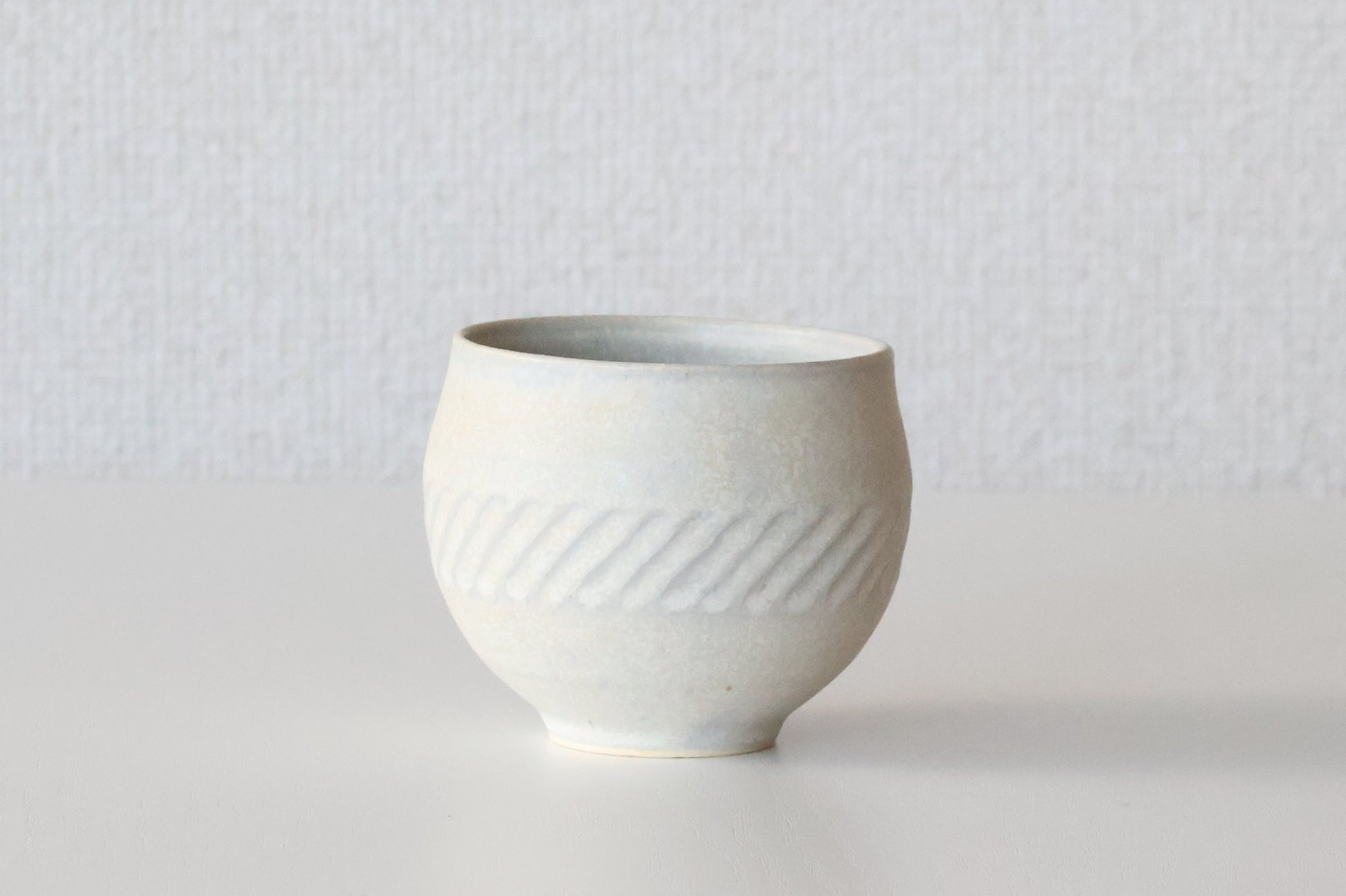 まっさらな白に、やわらかな曲線としのぎ模様が浮かび上がる「しのぎカップ」。手のひらにすっと馴染むかたちと、落ち着いた質感が、心にそっと寄り添ってくれます。毎日のひとときに、そして大切な誰かへの贈り物にもぴったりのうつわです。「ありがとう」や「おつかれさま」の気持ちを、この器に添えて届けてみませんか。