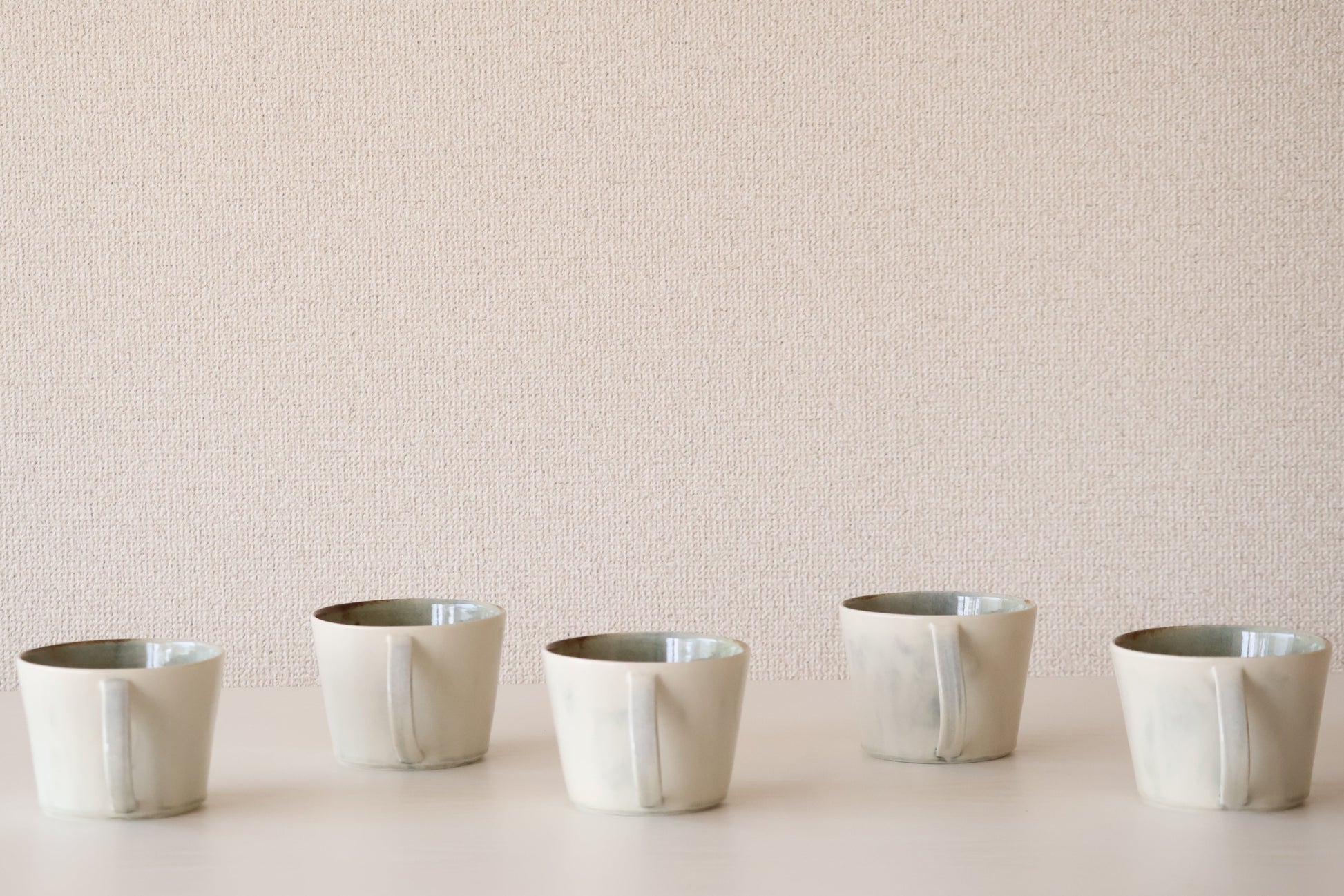 藍白のやわらかな釉が美しい「藍白(あいじろ)釉マグカップ」。手に取ると、そっと心を温めてくれる穏やかな存在感があります。毎日のコーヒーやティータイムを特別なひとときにしてくれる、大切な方への贈り物にもおすすめの器です。